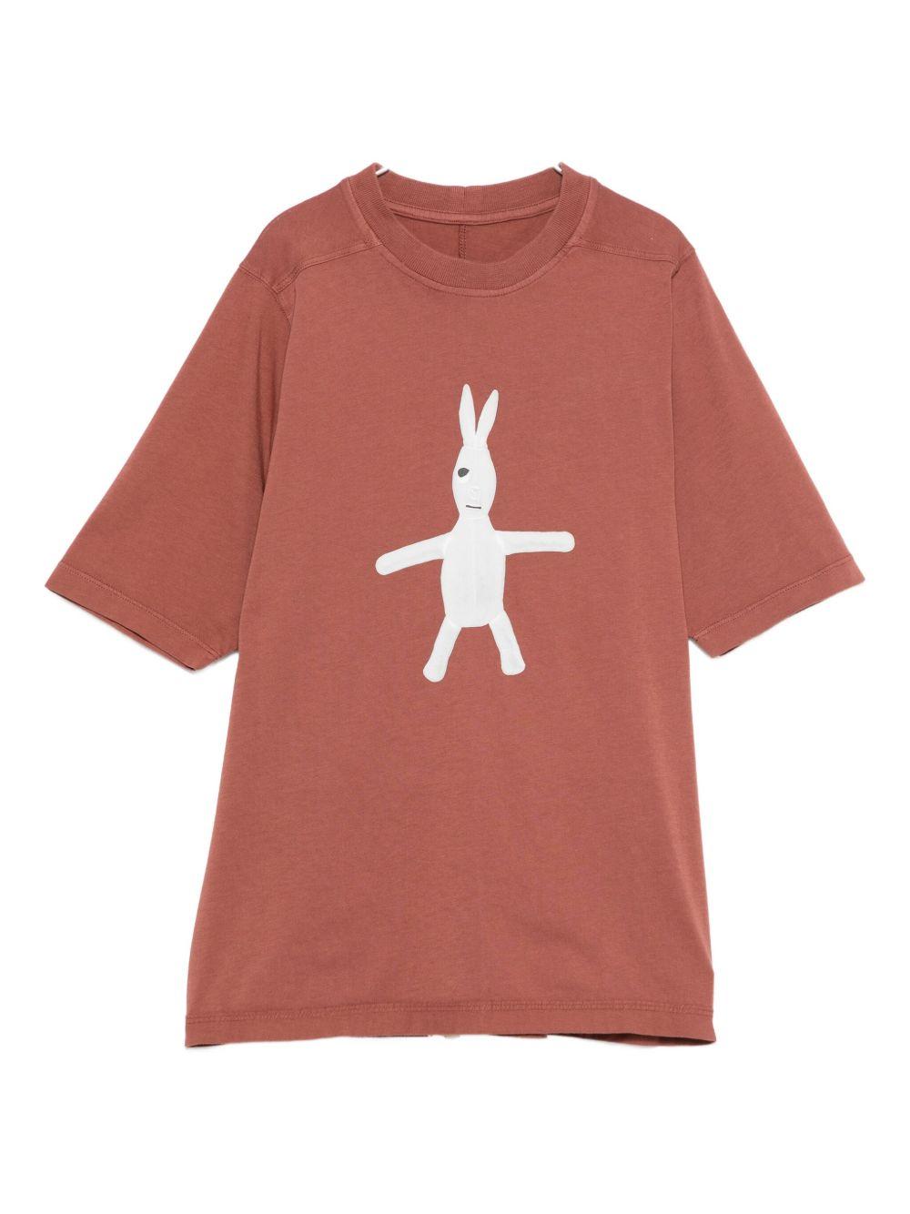 T-shirt Jumbo per bambino Rick Owens Kids marrone con stampa grafica coniglio sul davanti