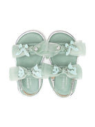 Sandali per bambina BabyWalker verde con fiocco e soletta in pelle con logo