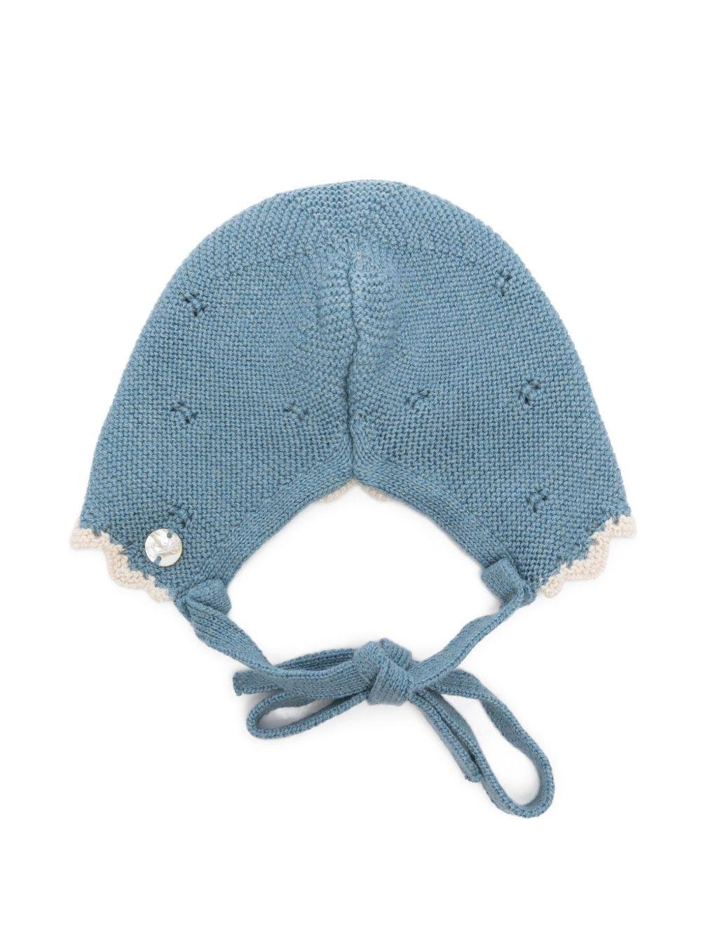 Cuffia per neonati Paz Rodrìguez blu con orlo a smerlo