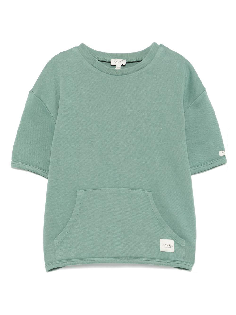 Il prodotto Felpa per bambino Donsje Darragh verde con tasca frontale a marsupio è disponibile sullo store online RubinoKids.com. Realizzato in Cotone 100%. Il prodotto presenta un colore verde muschio, tasca frontale a marsupio, girocollo, maniche corte, mini targhetta con logo. Varie taglie a catalogo, appartiene alla collezione Donsje Primavera/Estate 2025 ed è disponibile in pronta spedizione con consegna in 24/48h per l'Italia.