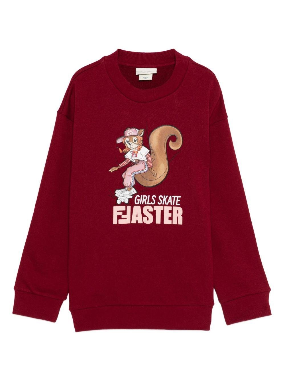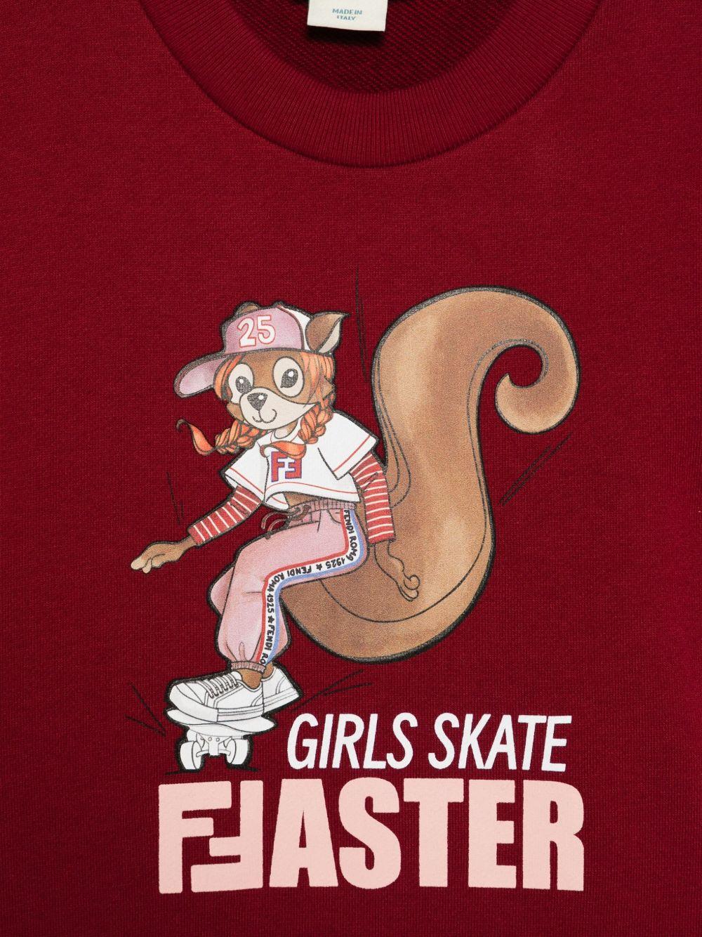Felpa per bambina Fendi Kids rosso con stampa scoiattolo