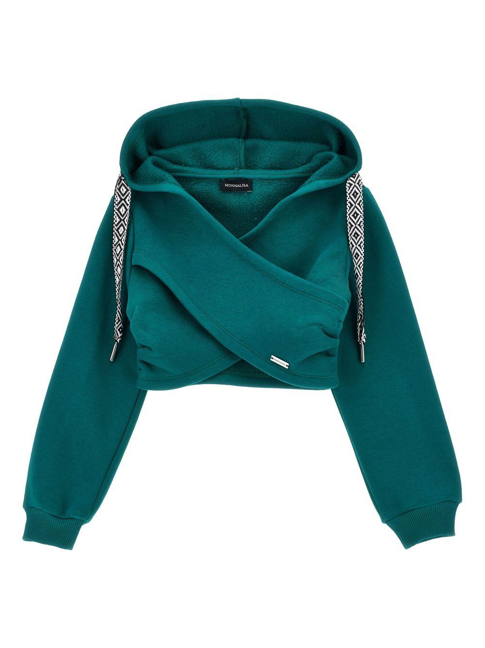 Felpa per bambina Monnalisa verde doppiostrato con cappuccio