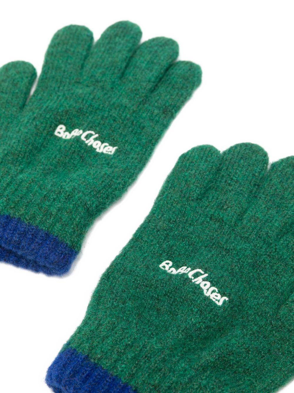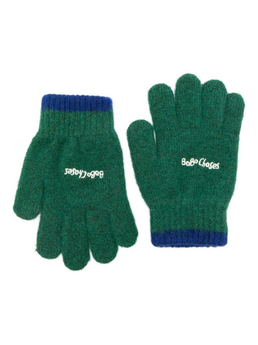 Guanti per bambino Bobo Choses verdi con logo ricamato
