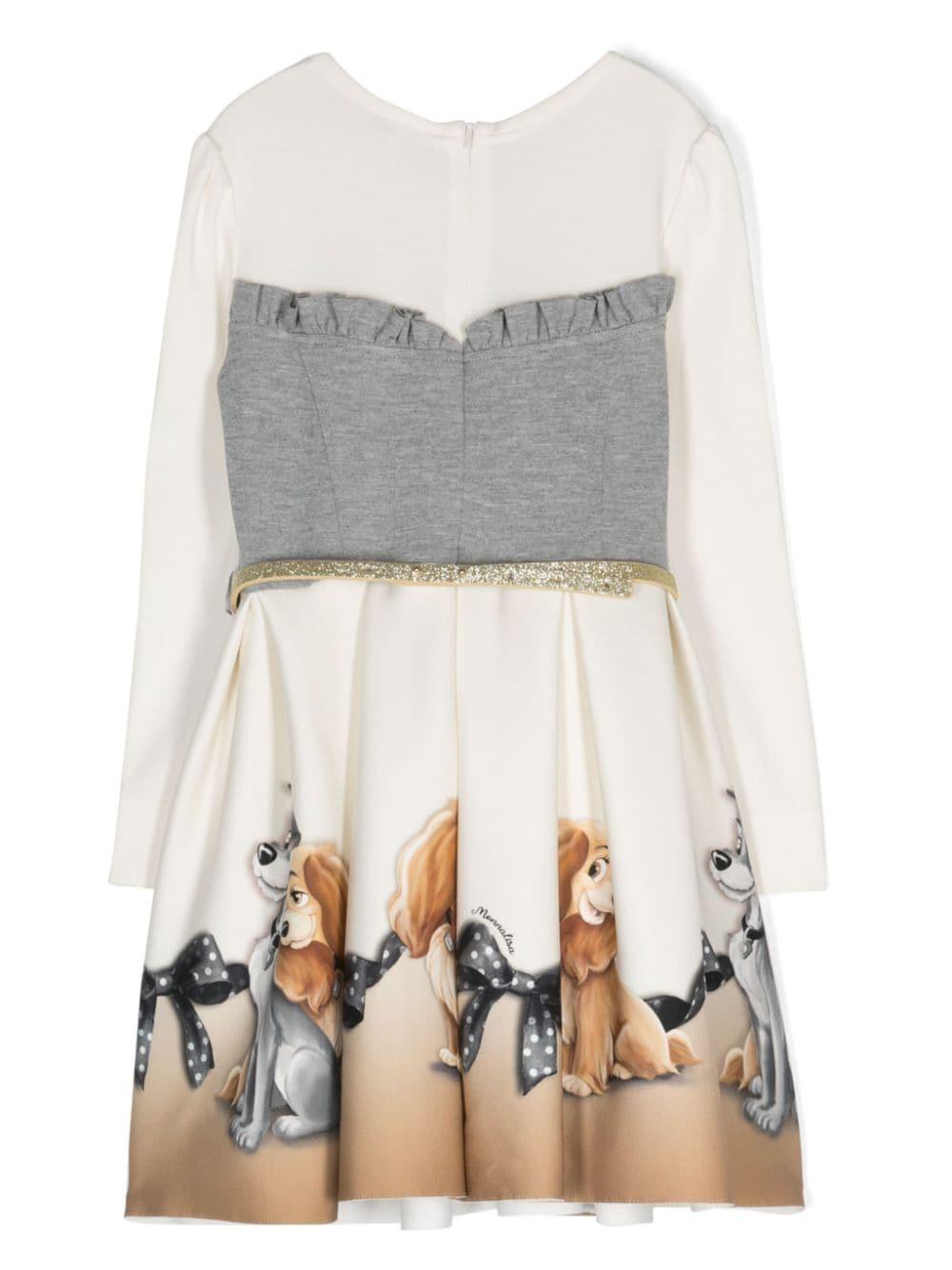 Abito svasato con stampa grafica per bambina Monnalisa bianca con girocollo