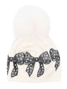Berretto beige per bambina con pompon Monnalisa