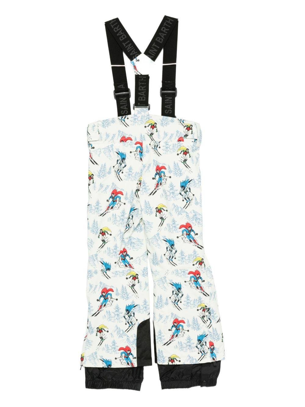 Salopette per bambino MC2 Saint Barth Kids bianca con stampa grafica con supereroi
