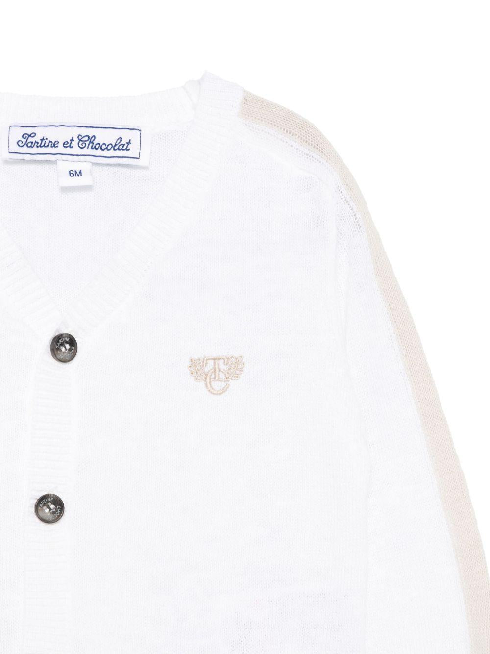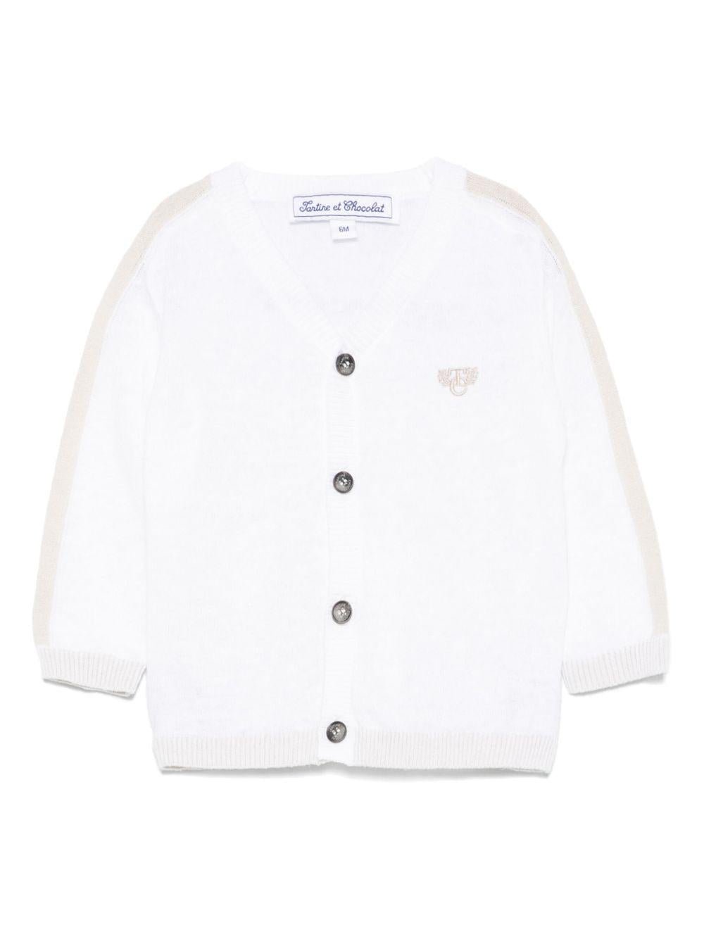 Cardigan per neonato Tartine Et Chocolat bianco con ricamo e bordo a contrasto