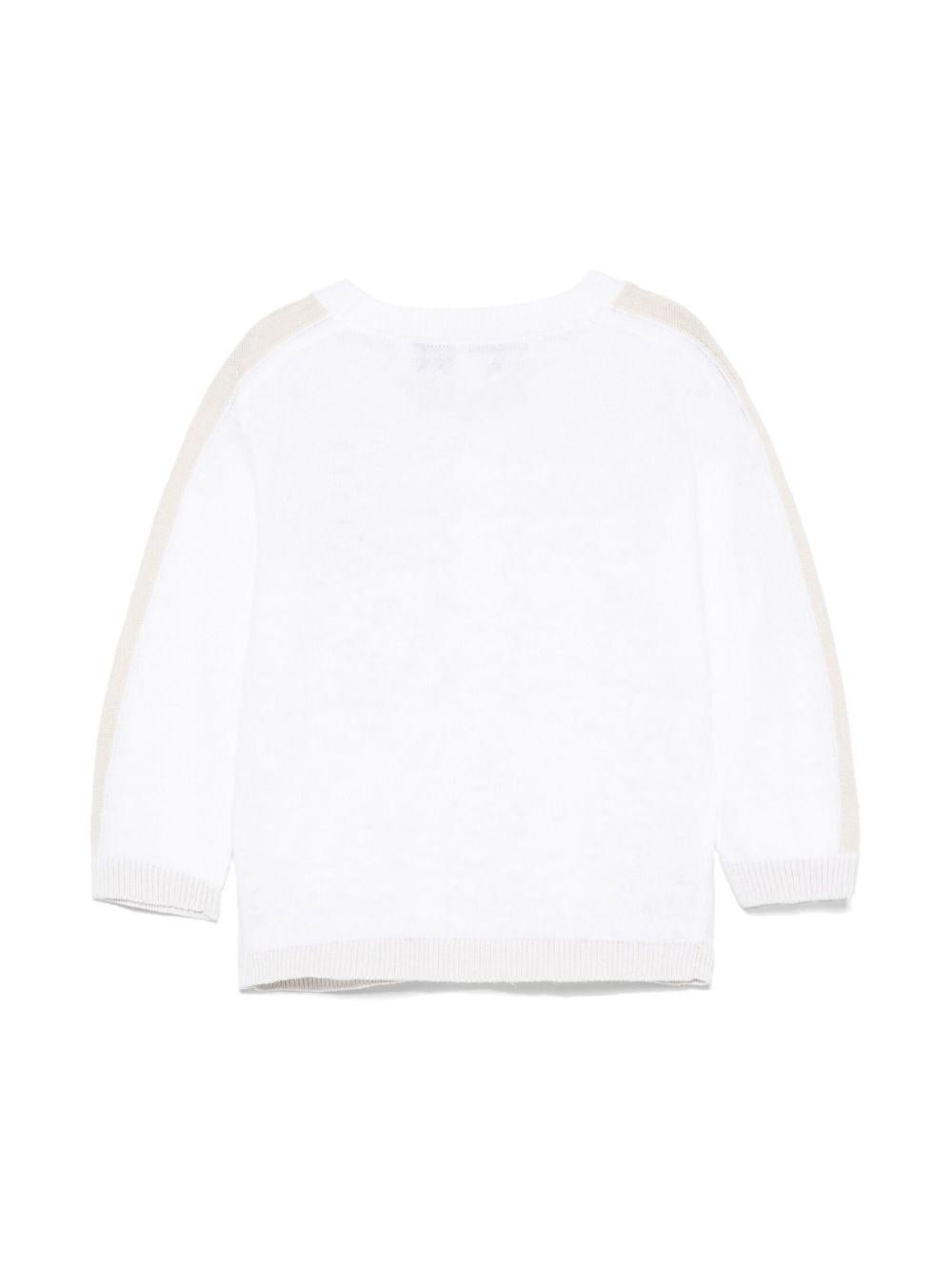 Il prodotto Cardigan per neonato Tartine Et Chocolat bianco con ricamo e bordo a contrasto è disponibile sullo store online RubinoKids.com. Realizzato in lino 55%, cotone 45%. Il prodotto presenta un colore bianco, chiusura frontale con abbottonatura, orlo e polsini a coste, scollo a V, bordo a contrasto. Varie taglie a catalogo, appartiene alla collezione Tartine Et Chocolat Primavera/Estate 2025 ed è disponibile in pronta spedizione con consegna in 24/48h per l'Italia.