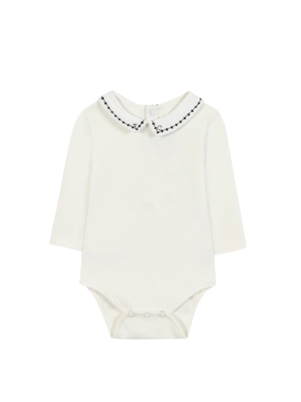 Il prodotto Tutina per neonati Tartine Et Chocolat bianca con logo ricamato è disponibile sullo store online RubinoKids.com. Realizzato in cotone 100%. Il prodotto presenta un colore bianco, colletto Peter Pan, maniche lunghe, dettaglio ricamato. Varie taglie a catalogo, appartiene alla collezione Tartine Et Chocolat Autunno/ Inverno 2025 ed è disponibile con consegna in 24/48h per l'Italia.