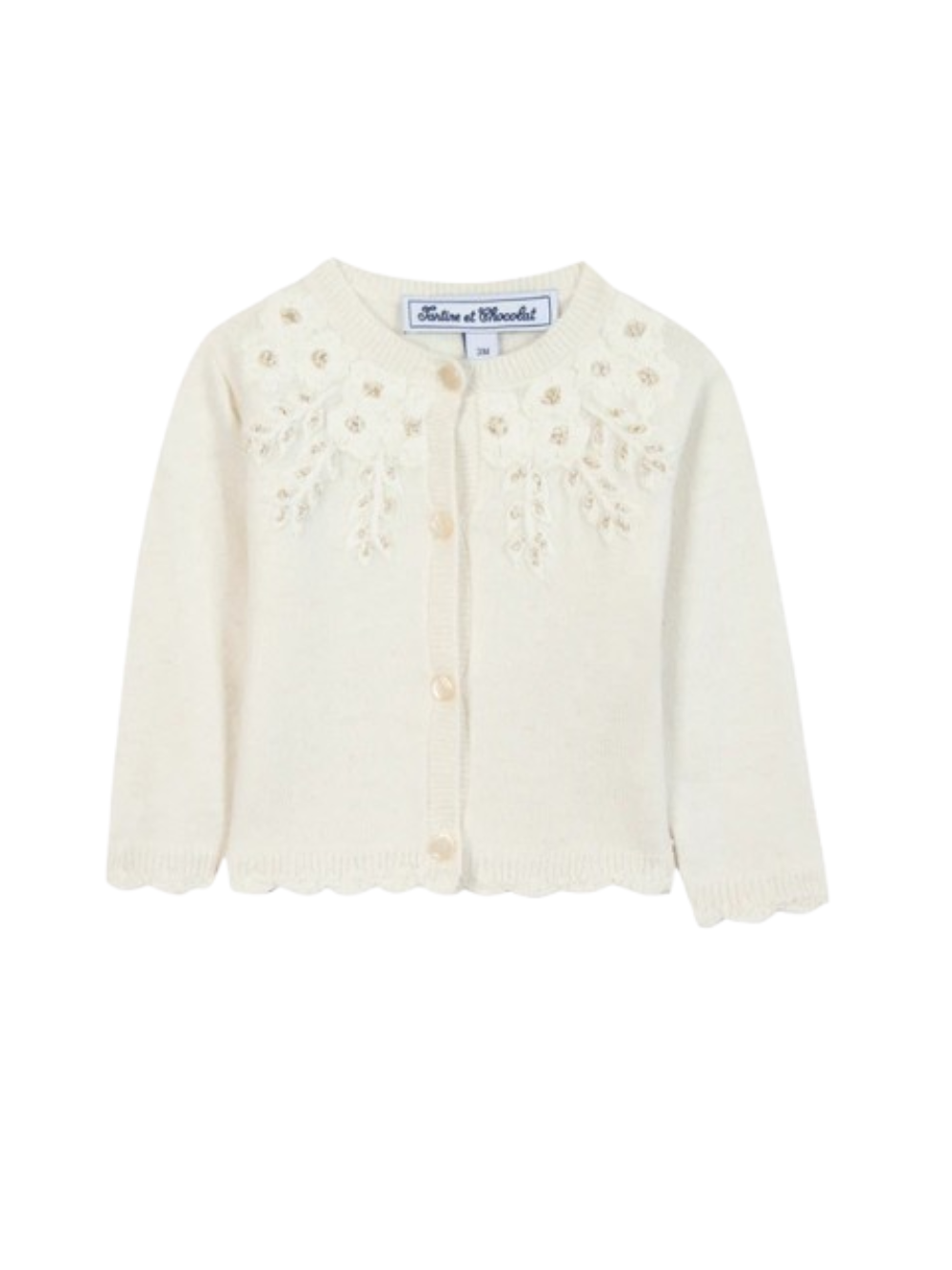 Cardigan per neonata Tartine Et Chocolat bianco con ricamo a fiori