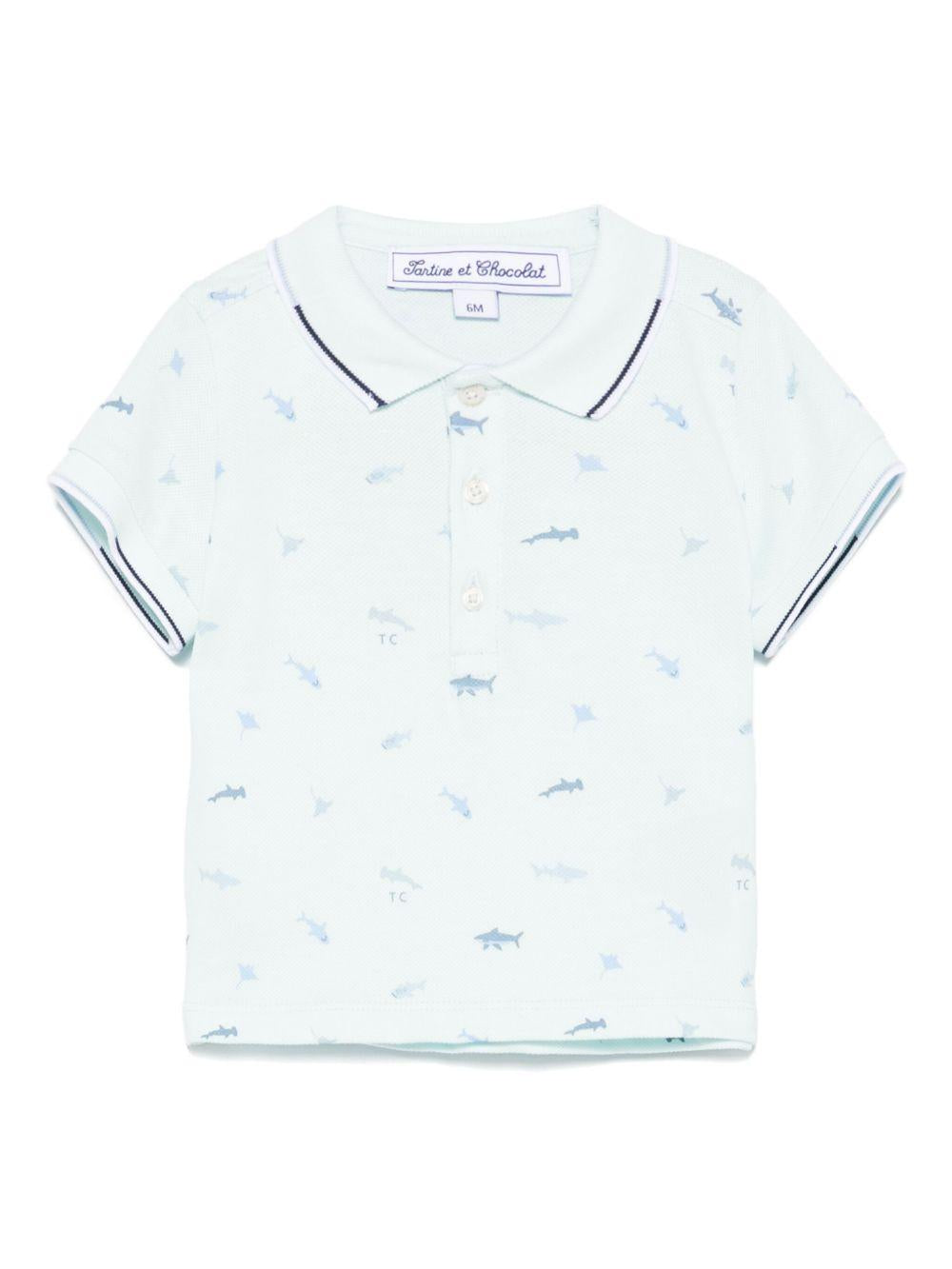 Polo per neonato Tartine Et Chocolat azzurro con ricamo