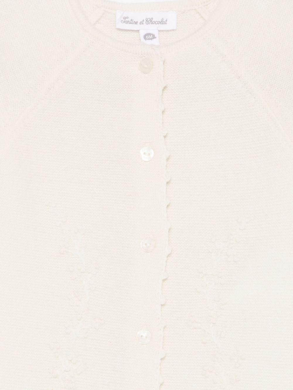 Il prodotto Tutina per neonata Tartine Et Chocolate bianca con bordo smerlato è disponibile sullo store online RubinoKids.com. Realizzato in tessuto 100%. Il prodotto presenta un colore bianco, chiusura con bottoni, bordo smerlato, maniche lunghe, trama a coste. Varie taglie a catalogo, appartiene alla collezione Tartine Et Chocolate Autunno/ Inverno 2025 ed è disponibile con consegna in 24/48h per l'Italia.