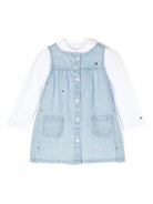 Il prodotto Set di abiti con stampa logo per neonata Tommy Hilfiger Junior azzurro con scollo rotondo è disponibile sullo store online RubinoKids.com. Realizzato in lyocell 100%, cotone 95%, spandex/elastam 5%. Il prodotto presenta un chambray azzurro chiaro con stampa floreale all-over, scollo rotondo, senza maniche, logo ricamato sul petto, due tasche anteriori applicate, orlo dritto, chiusura frontale con bottoni. T-shirt: jersey di misto cotone bianco, scollo rotondo, maniche lunghe, logo ricamato sulla manica, stampa del logo sul davanti, orlo dritto, chiusura con bottoni automatici sulla spalla. Taglia a catalogo, appartiene alla collezione Tommy Hilfiger Junior Autunno/Inverno 2024 ed è disponibile in pronta spedizione con consegna in 24/48h per l'Italia.
