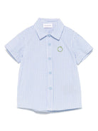 Camicia per neonato Trussardi Junior azzurro a righe con colletto classico e fibbia frontale