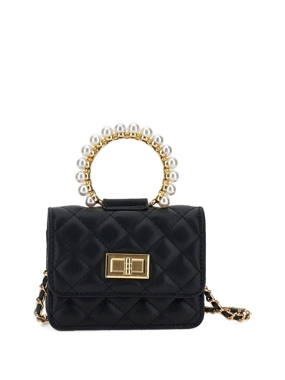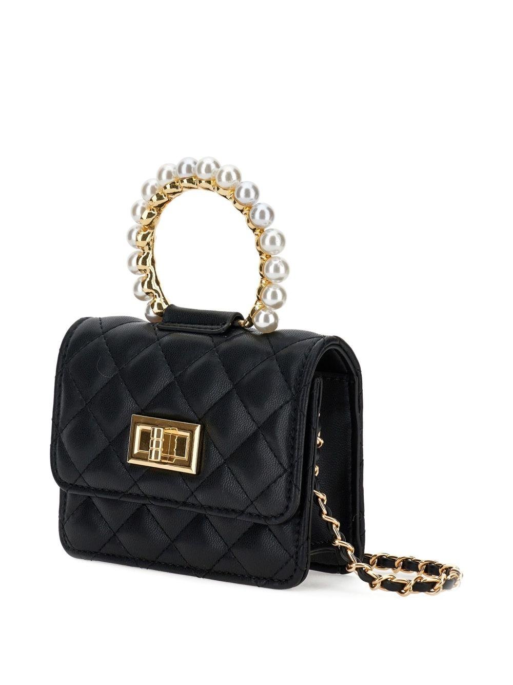 Borsa a spalla per bambina Monnalisa nera con perle sul manico
