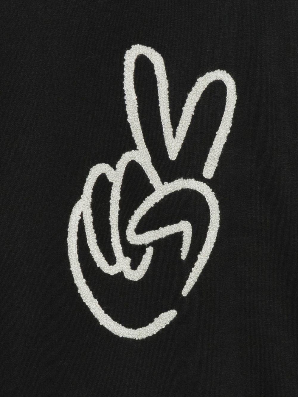 Il prodotto Felpa per bambini Molo nera con simbolo della pace è disponibile sullo store online RubinoKids.com. Realizzato in cotone 80%, poliestere 20%. Il prodotto presenta un colore nero,