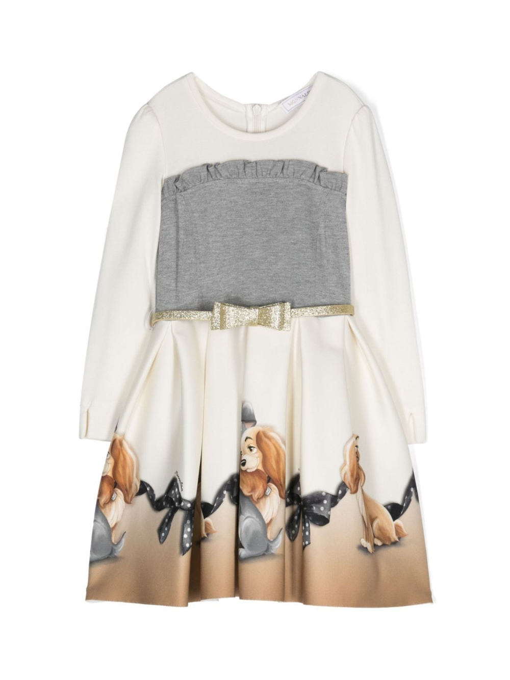 Abito svasato con stampa grafica per bambina Monnalisa bianca con girocollo