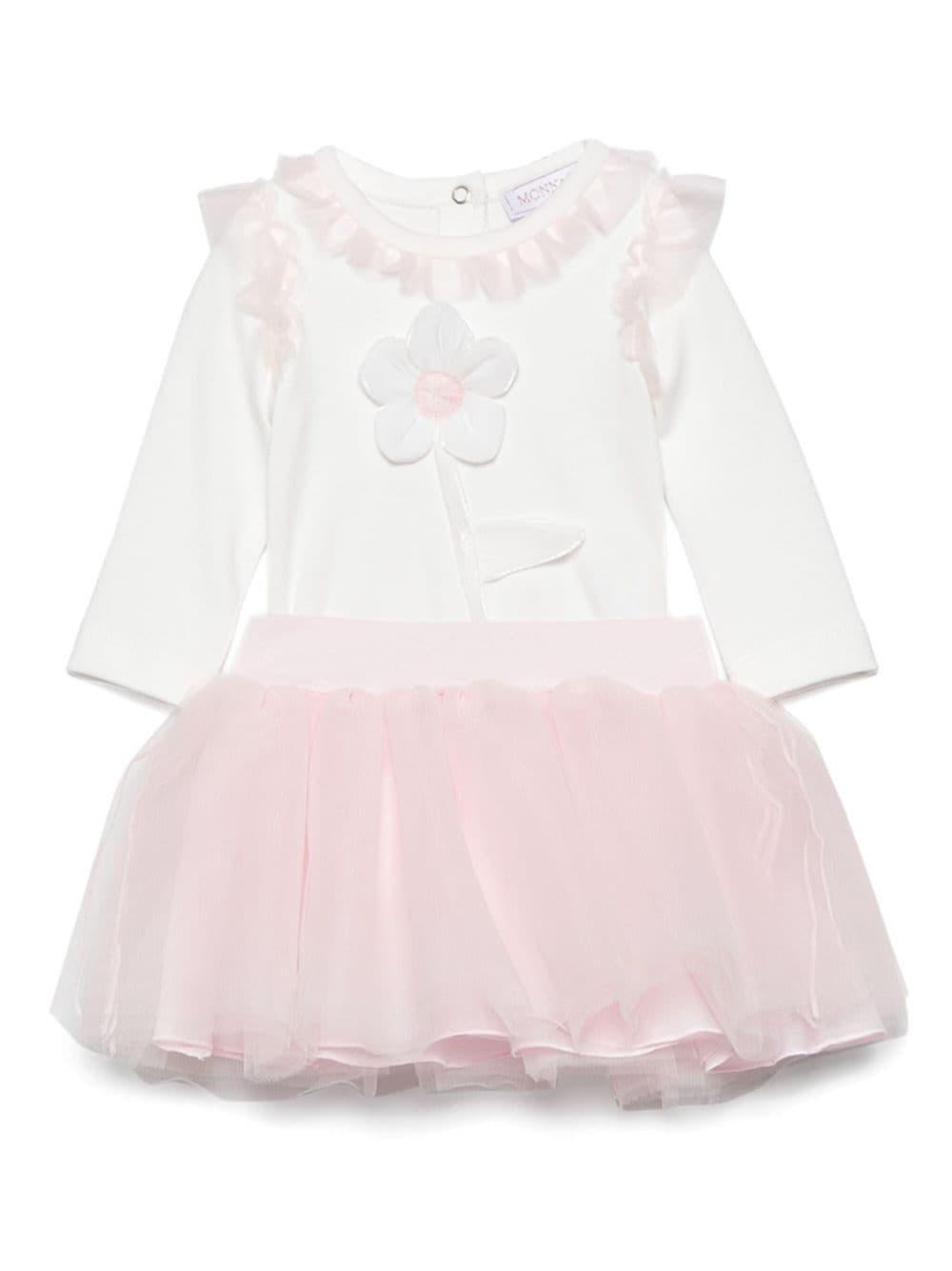 Il prodotto Monnalisa Set con gonna a fiori è disponibile sullo store online RubinoKids.com. Realizzato in poliestere 100%, cotone 100%. Il prodotto presenta un set di due, Body, bianco/rosa chiaro, cotone, trama jersey, applicazione a fiori, rifinitura con ruches, colletto rotondo, maniche lunghe, chiusura posteriore con bottone a pressione, chiusura con abbottonatura a pressione sulla spalla, design senza fodera, rosa chiaro, rete in tulle, gonna plissettata, vita elasticizzata, fodera integrale. Taglia a catalogo, appartiene alla collezione Monnalisa Autunno/Inverno 2024 ed è disponibile in pronta spedizione con consegna in 24/48h per l'Italia.