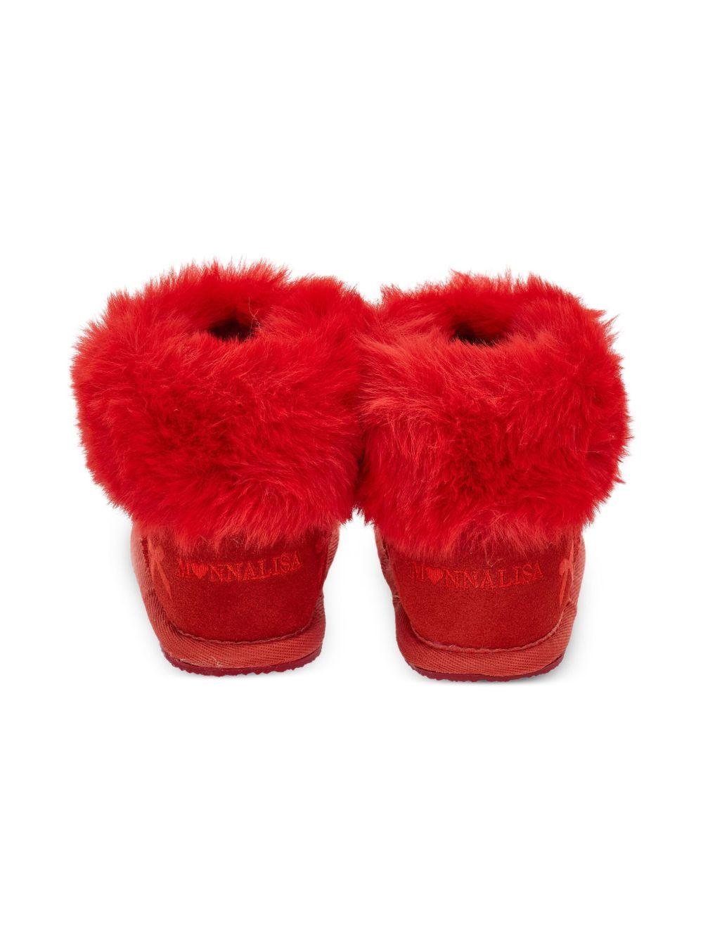 Il prodotto Stivali per neonata Monnalisa rossi con fiocchi applicati è disponibile sullo store online RubinoKids.com. Realizzato in cotone 100%. Il prodotto presenta un colore rosso, orlo in pelliccia sintetica, gemme decorative, fiocco applicato, design senza lacci. Varie taglie a catalogo, appartiene alla collezione Monnalisa Autunno/ Inverno 2025 ed è disponibile con consegna in 24/48h per l'Italia.