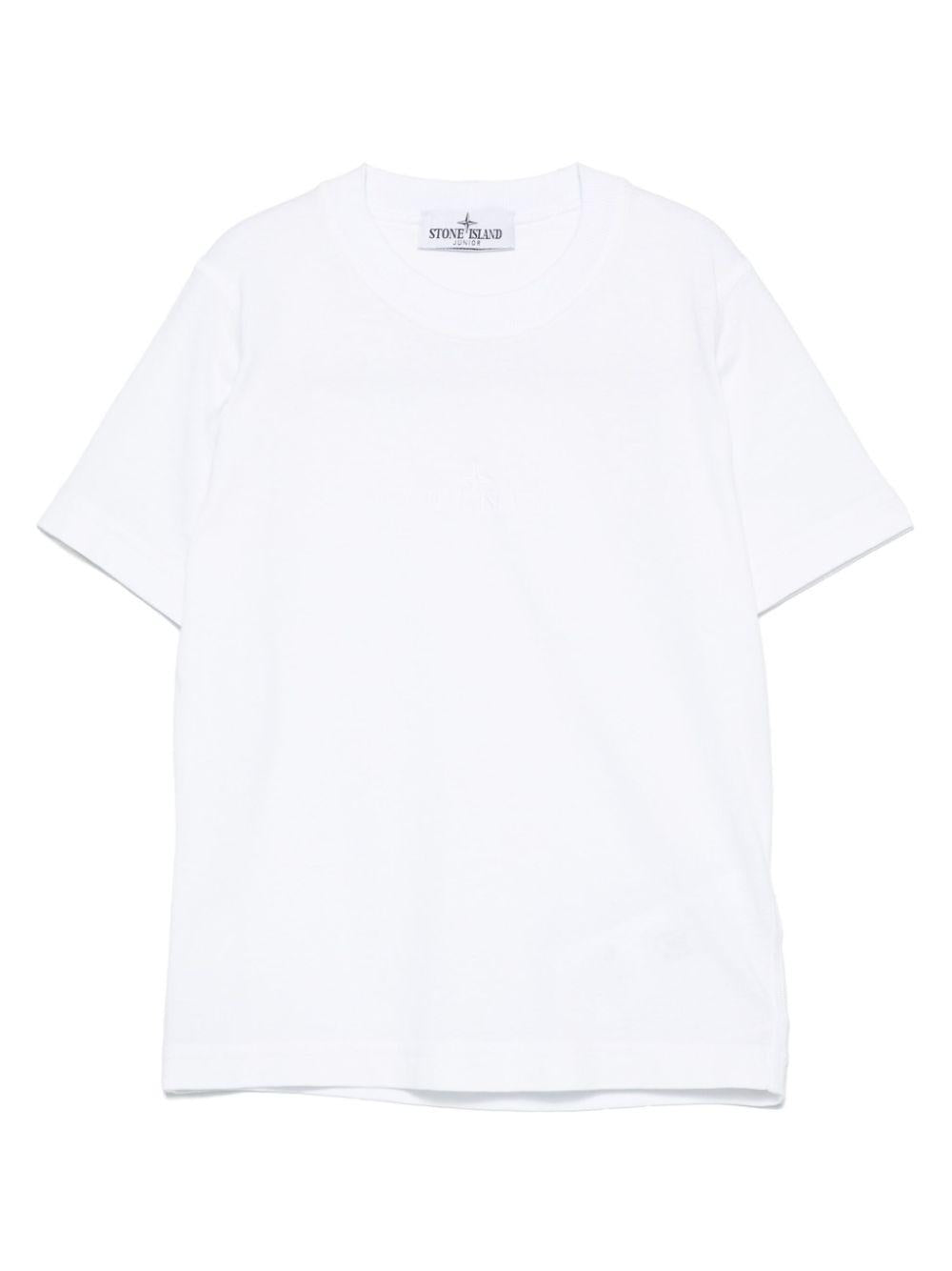 T-shirt per bambino Stone Island Junior bianco con ricamo con orlo dritto