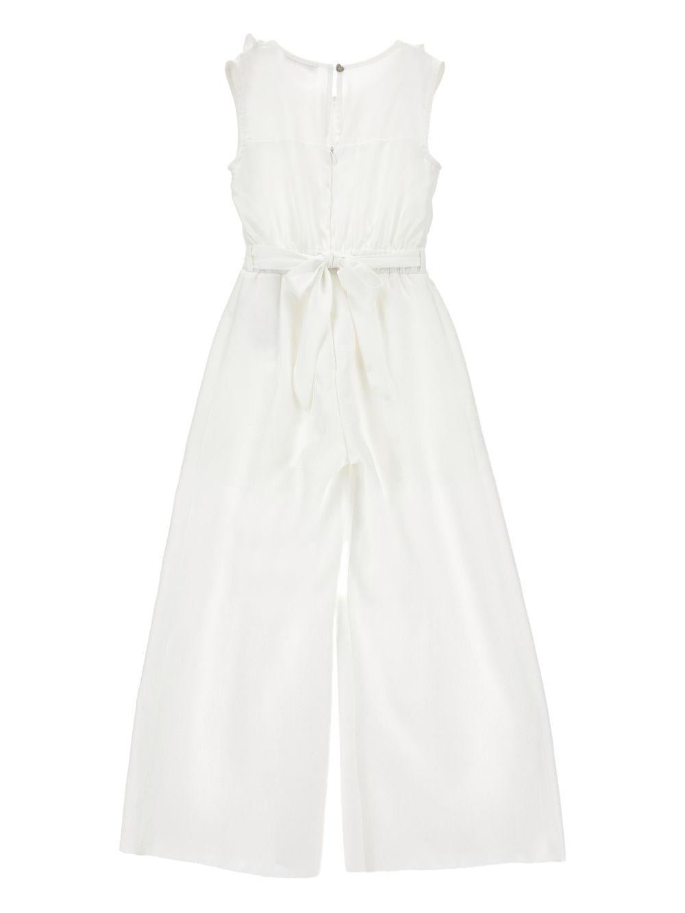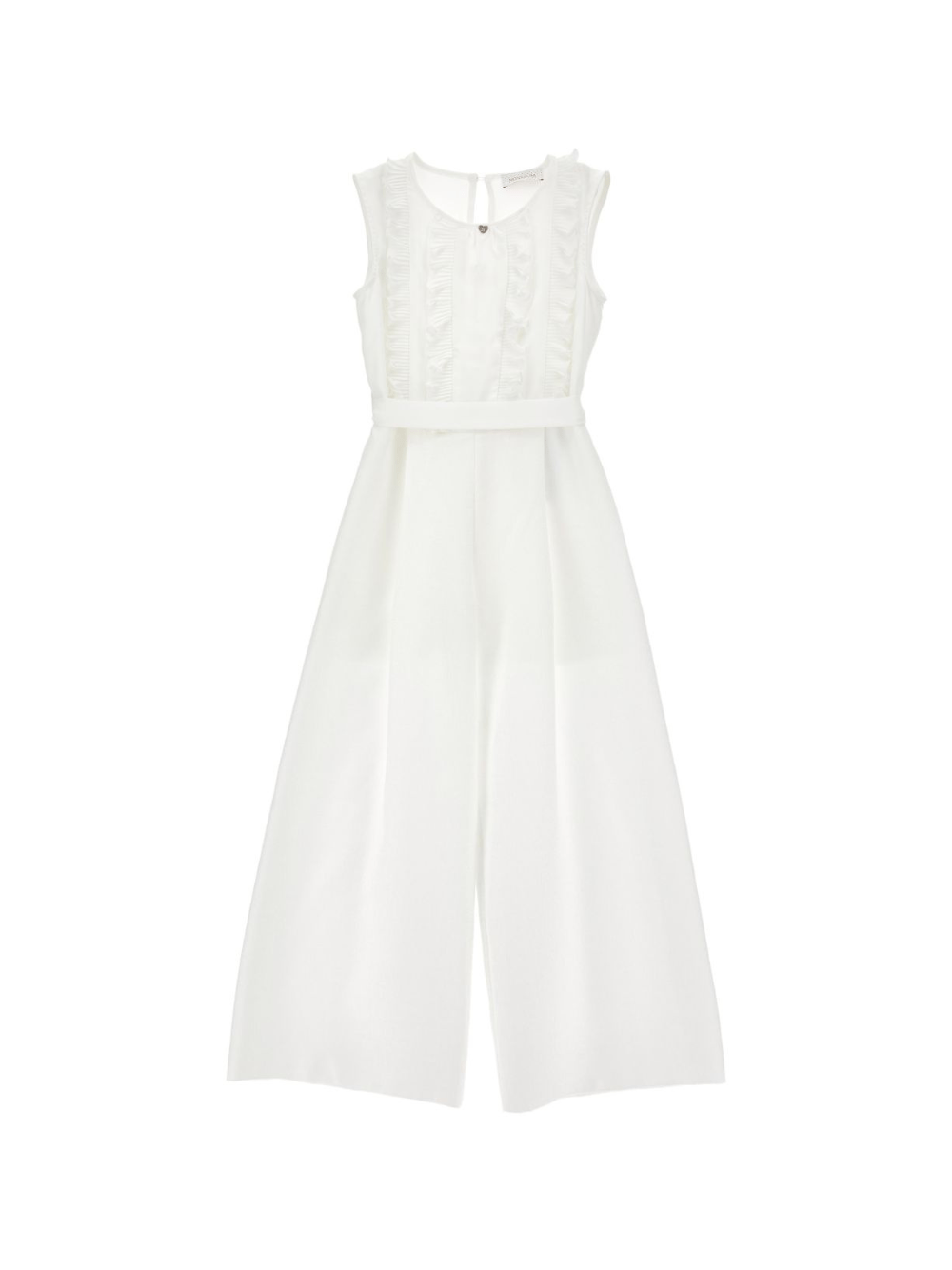 Abito modello tuta per bambina Monnalisa bianca con ruches e cintura