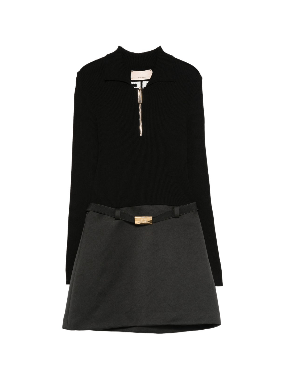 The Elisabetta Franchi La Mia Bambina black dress with zipper is available on the online store RubinoKids.com. Made of 100% fabric, it features a black color, a zipper closure, a ribbed top, an A-line skirt, a belted waist, and a gold-colored buckle. Available in various sizes, it is part of the Elisabetta Franchi La Mia Bambina Fall/Winter 2025 collection and is available for delivery in Italy within 24/48 hours.