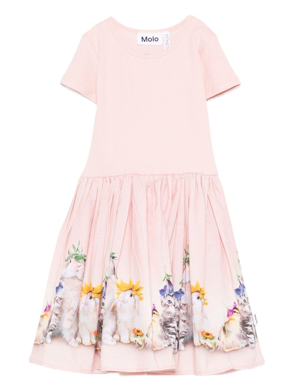 Il prodotto Abito per bambina Molo rosa con stampa grafica animali è disponibile sullo store online RubinoKids.com. Realizzato in cotone 100%. Il prodotto presenta un colore rosa, maniche corte, girocollo, stampa grafica animali. Varie taglie a catalogo, appartiene alla collezione Molo Primavera/Estate 2026 ed é disponibile con consegna in 24/48h per l'Italia.