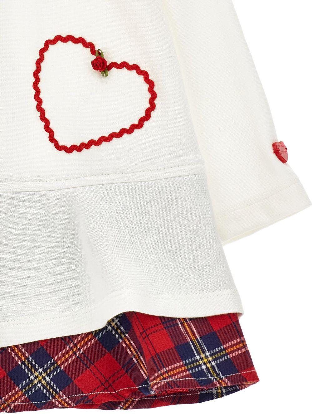 The Monnalisa multicolored baby girl dress with round collar is available on the RubinoKids.com online store. Made of 100% fabric, it features a white/red color, a hidden back zip closure, a contrasting trim, and a round collar. Available in various sizes, it is part of the Monnalisa Fall/Winter 2025 collection and is available for delivery in Italy within 24-48 hours.