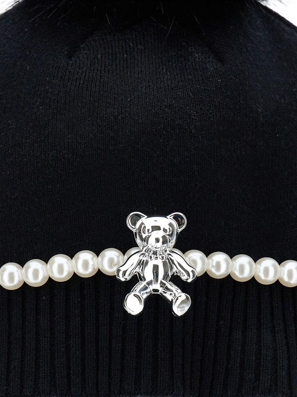 The Monnalisa black hat for girls with pompom is available on the RubinoKids.com online store. Made of 100% fabric, it features a black color, a faux fur pompom, pearl detailing, a teddy bear charm, a ribbed weave, and a knitted design. Available in various sizes, it is part of the Monnalisa Fall/Winter 2025 collection and is available for 24-48 hour delivery in Italy.
