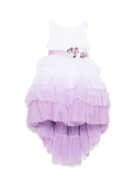Colorichiari white and lilac tulle dress for girls with floral appliques