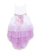 The Colorichiari white and lilac tulle dress for girls with a floral applique is available on the RubinoKids.com online store. Made of 100% polyester, it features a white color, a hidden back zip closure, a removable belt, sleeveless, and a full skirt. Available in various sizes, it is part of the Colorichiari Spring/Summer 2025 collection and is available for immediate shipment with delivery within 24-48 hours in Italy.