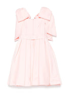 The Colorichiari pink dress for girls with floral applique is available on the RubinoKids.com online store. Made of 97% polyester and 3% spandex/elastane, it features a pink color, a hidden back zip closure, a back button closure, a layered design, and an oversized bow detail. Available in various sizes, it is part of the Colorichiari Spring/Summer 2025 collection and is available for immediate shipment with delivery within 24-48 hours in Italy.