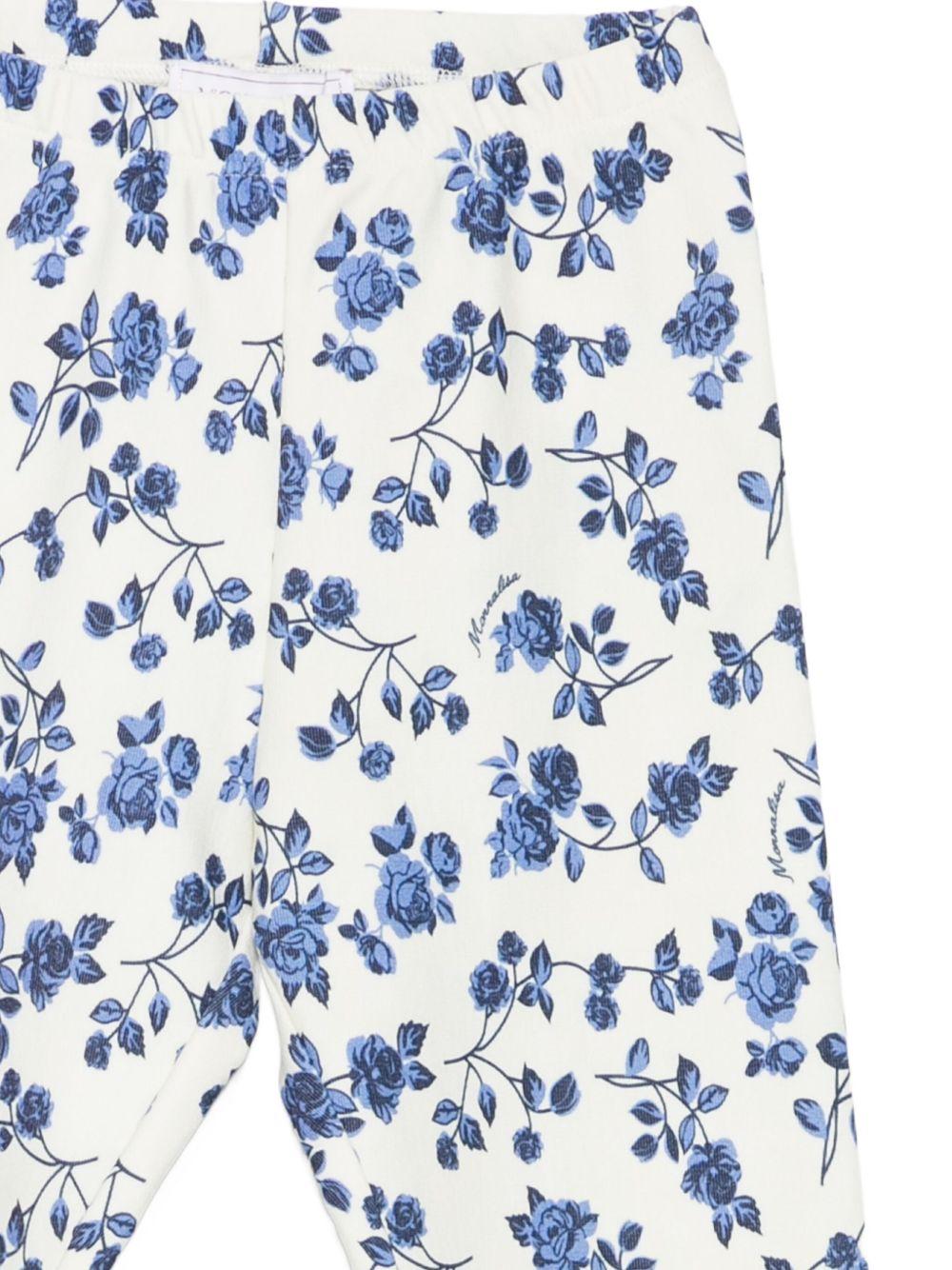 The Monnalisa multicolored graphic print t-shirt and leggings set for girls is available on the RubinoKids.com online store. Made of 100% fabric, the product features a white/light blue color scheme, floral print leggings, long sleeves, a graphic print, ruffled details, and a floral motif. Available in various sizes, it is part of the Monnalisa Fall/Winter 2025 collection and is available for 24-48 hour delivery in Italy.