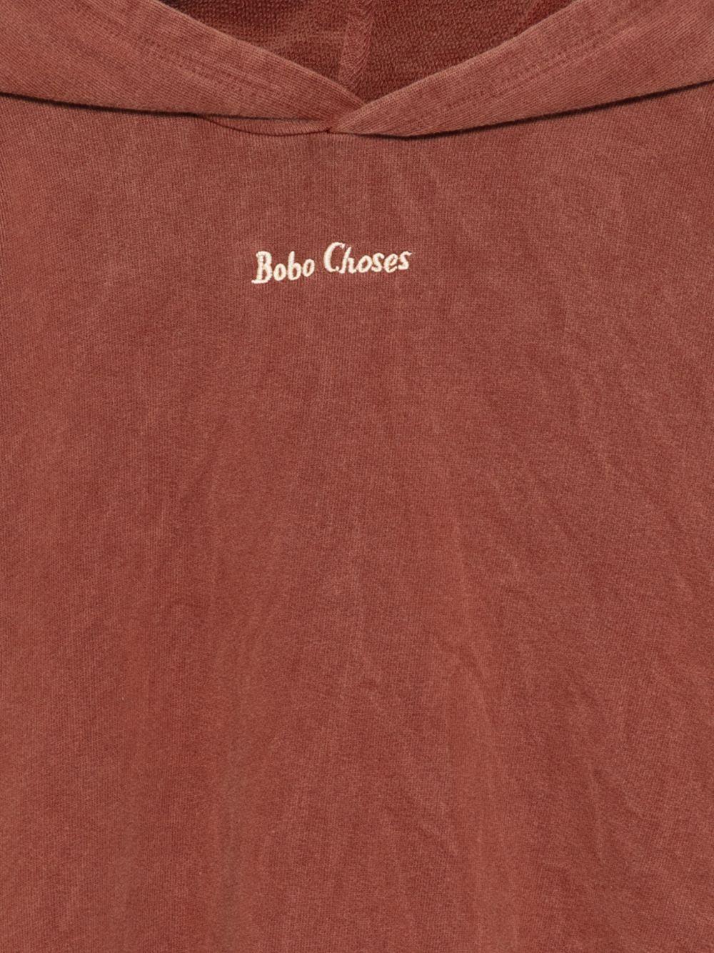 Il prodotto Felpa per bambino Bobo Choses marrone con logo sul davanti è disponibile sullo store online RubinoKids.com. Realizzato in cotone biologico 66%, cotone riciclato 17%, cotone 17%. Il prodotto presenta un colore marrone, cappuccio, logo sul davanti, maniche lunghe, orlo elasticizzato. Varie taglie a catalogo, appartiene alla collezione Bobo Choses Primavera/Estate 2026 ed è disponibile con consegna in 24/48h per l'Italia.