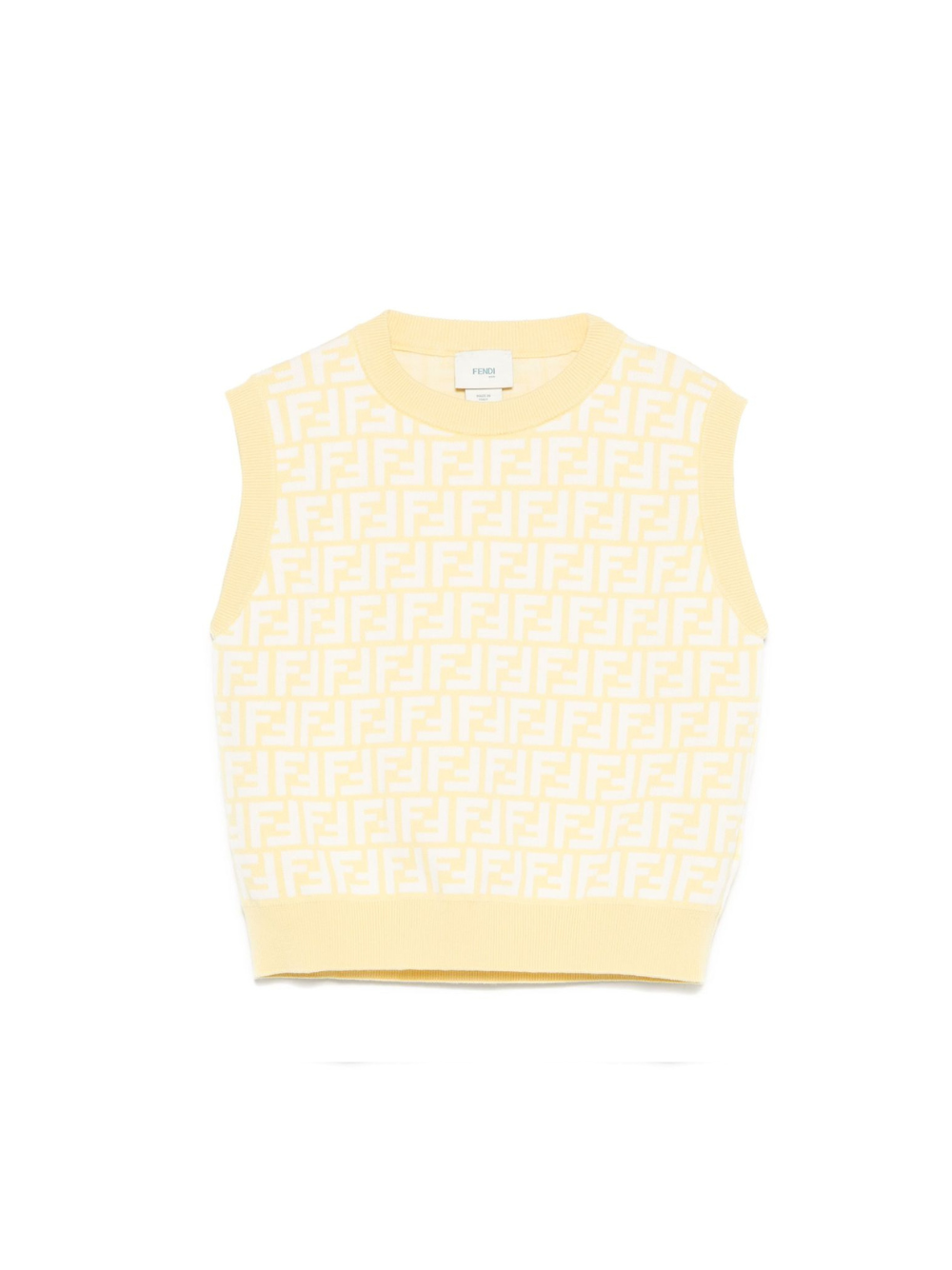 Fendi Kids yellow knitted vest for girls with all-over FF monogram