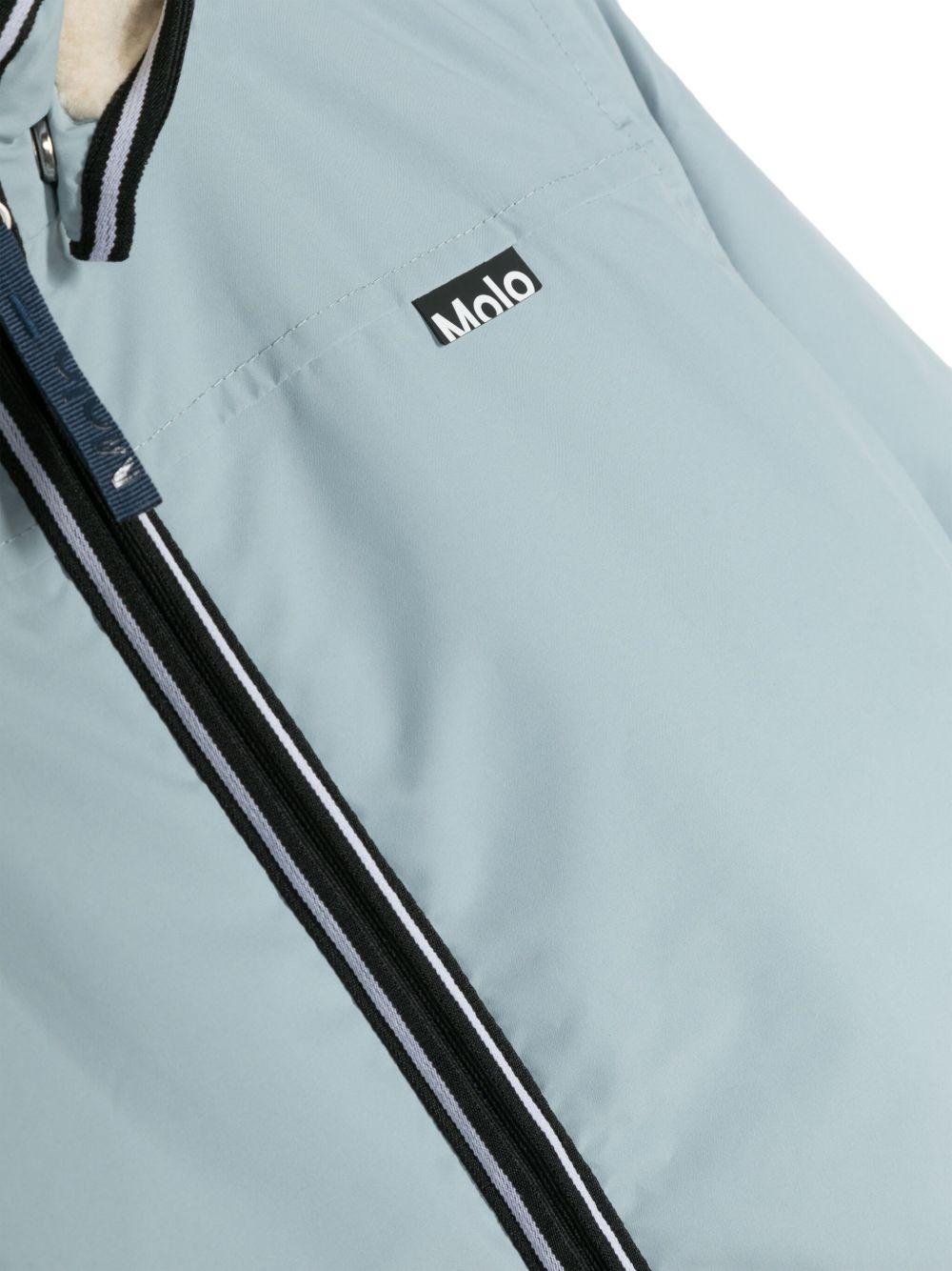 Il prodotto Giacca per bambino Molo azzurro con cappuccio è disponibile sullo store online RubinoKids.com. Realizzato in poliestere riciclato 100%. Il prodotto presenta un colore azzurro, fodera in finto shearling, applicazione con logo sul petto, bordi a contrasto, cappuccio, chiusura frontale con zip, maniche lunghe e due tasche laterali a filetto. Taglia a catalogo, appartiene alla collezione Molo Autunno/Inverno 2025 ed è disponibile in pronta spedizione con consegna in 24/48h per l'Italia.