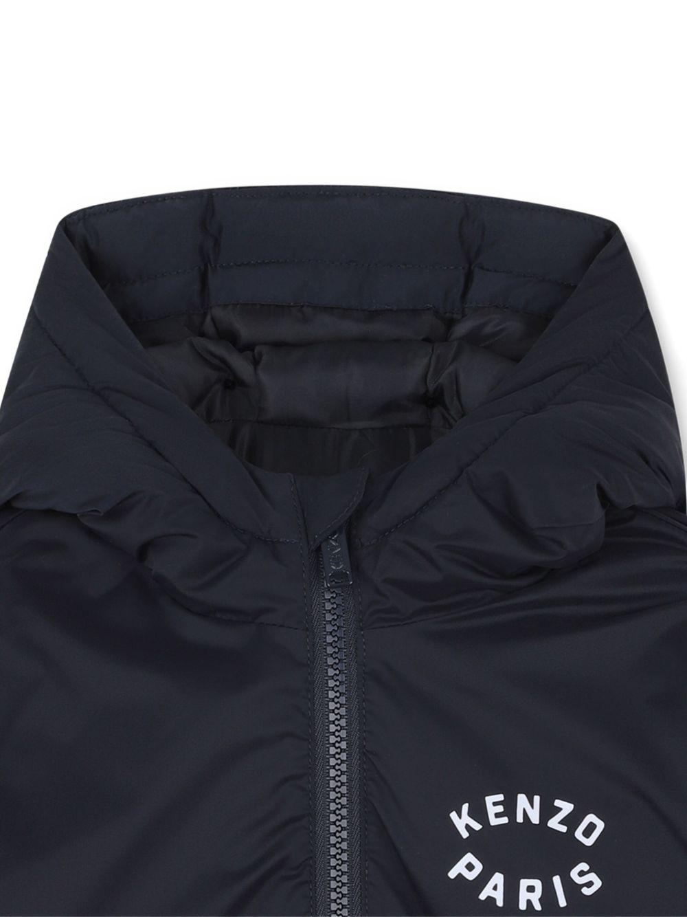 The Kenzo Kids baby boy's blue jacket with Tiger Head motif is available on the RubinoKids.com online store. Made of 100% polyester, it features a blue color, a front zip closure, a logo print, the signature Tiger Head motif, a padded design, and elasticated hems. Available in various sizes, it is part of the Kenzo Kids Fall/Winter 2025 collection and is available for 24-48 hour delivery in Italy.