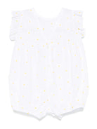 The Owl white baby romper with floral embroidery and ruffled details