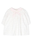 The La Stupenderia Floral Dress is available on the RubinoKids.com online store. Made of 100% cotton, it features a twill fabric, a floral print, a bow detail, a Peter Pan collar with lace trim, a back zip closure, long sleeves with elastic cuffs, a cropped, wide fit, a straight hem, and a cotton lining. This size is part of the La Stupenderia Fall/Winter 2024 collection and is available for immediate shipment with delivery within 24-48 hours in Italy.