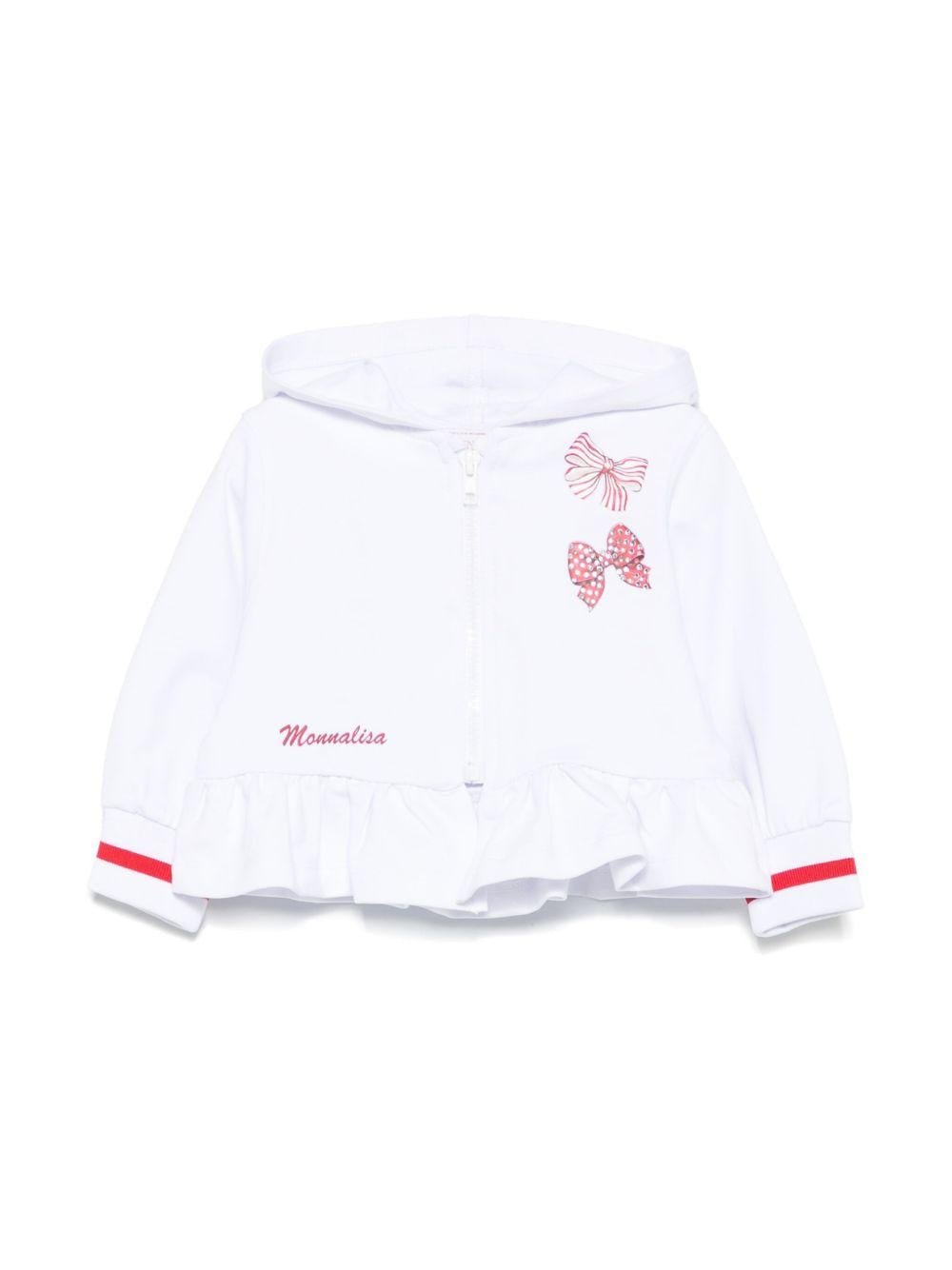 Monnalisa pink hoodie with bow print for newborns with ribbed cuffs