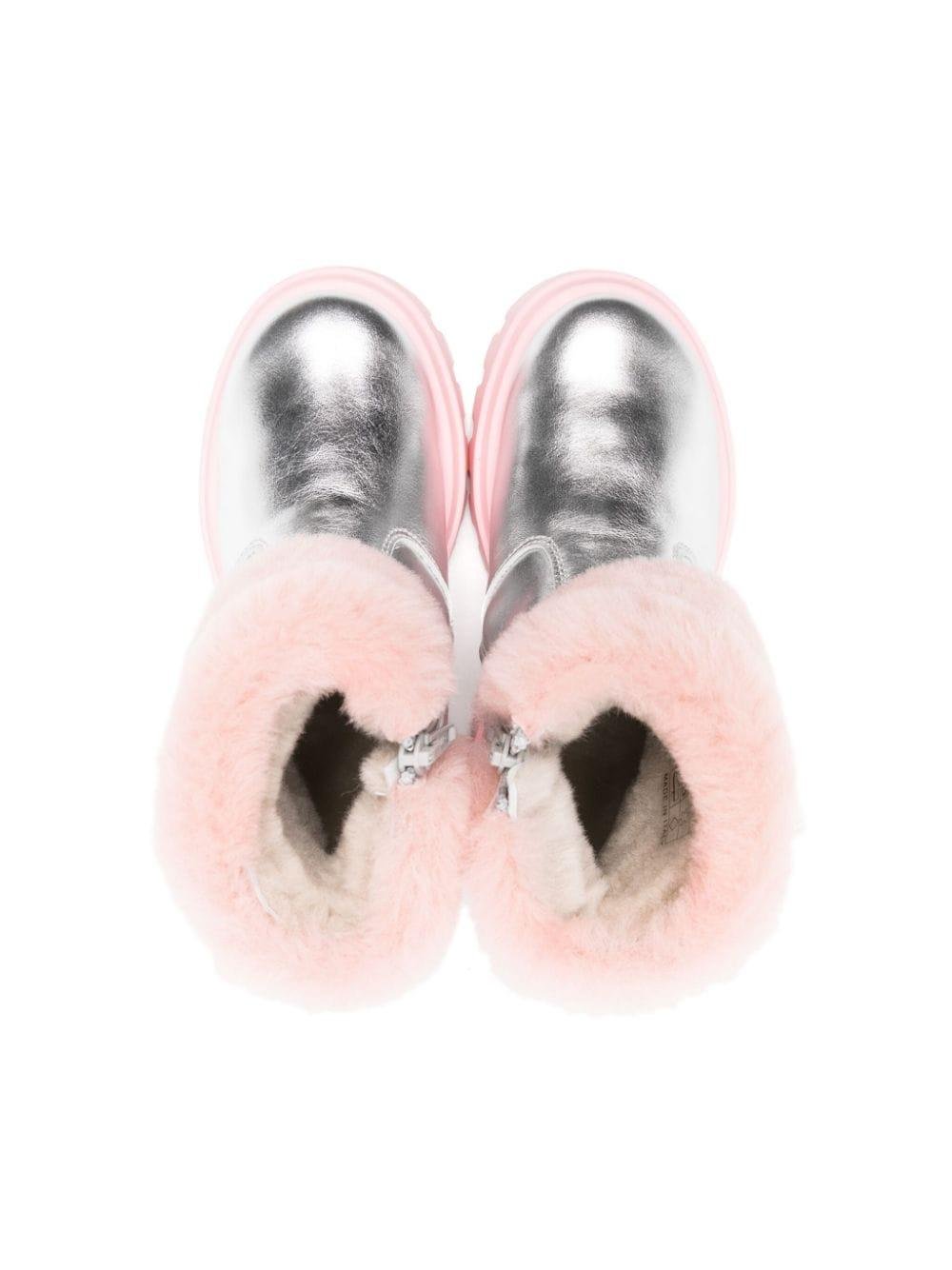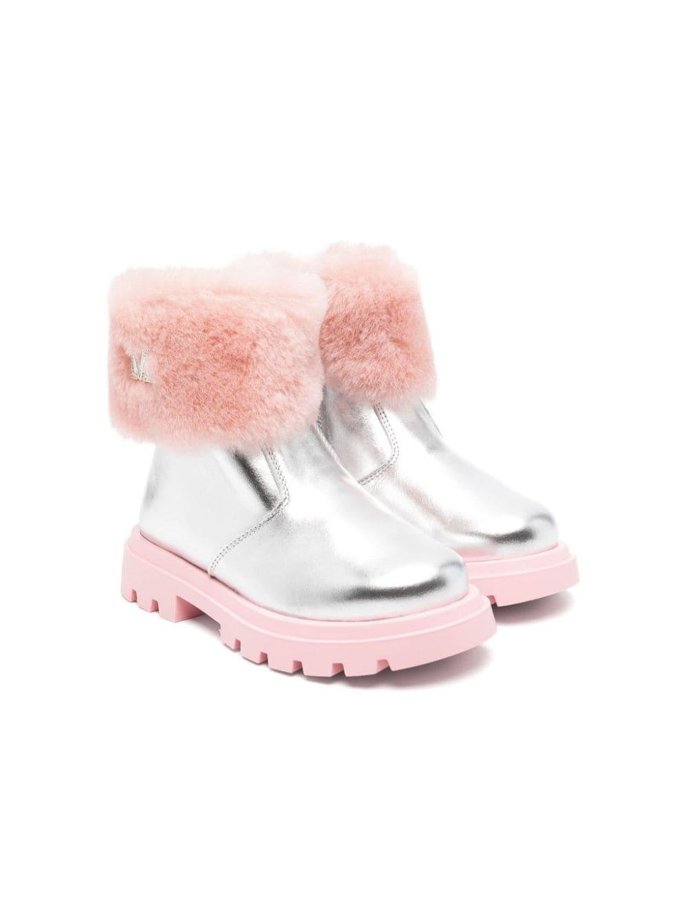 Il prodotto Stivaletti in pelle laminata per bambina Monnalisa argento con finitura laminata è disponibile sullo store online RubinoKids.com. Realizzato in Fodera: pelliccia di capra 100%. Suola: elastodiene 100%. Esterno: pelliccia di capra 100%, pelle di vitello 100%. Gli stivaletti presentano pelle di vitello, color argento/rosa bubblegum, finitura laminata, dettagli in pelliccia, placca con logo color argento, punta tonda, chiusura con cerniera laterale, soletta in pelle con marchio, suola carrarmato a contrasto, fodera in pelliccia, lunghezza alla caviglia. Varie taglie a catalogo, appartiene alla collezione Monnalisa Autunno/Inverno 2024 ed è disponibile in pronta spedizione con consegna in 24/48h per l'Italia.