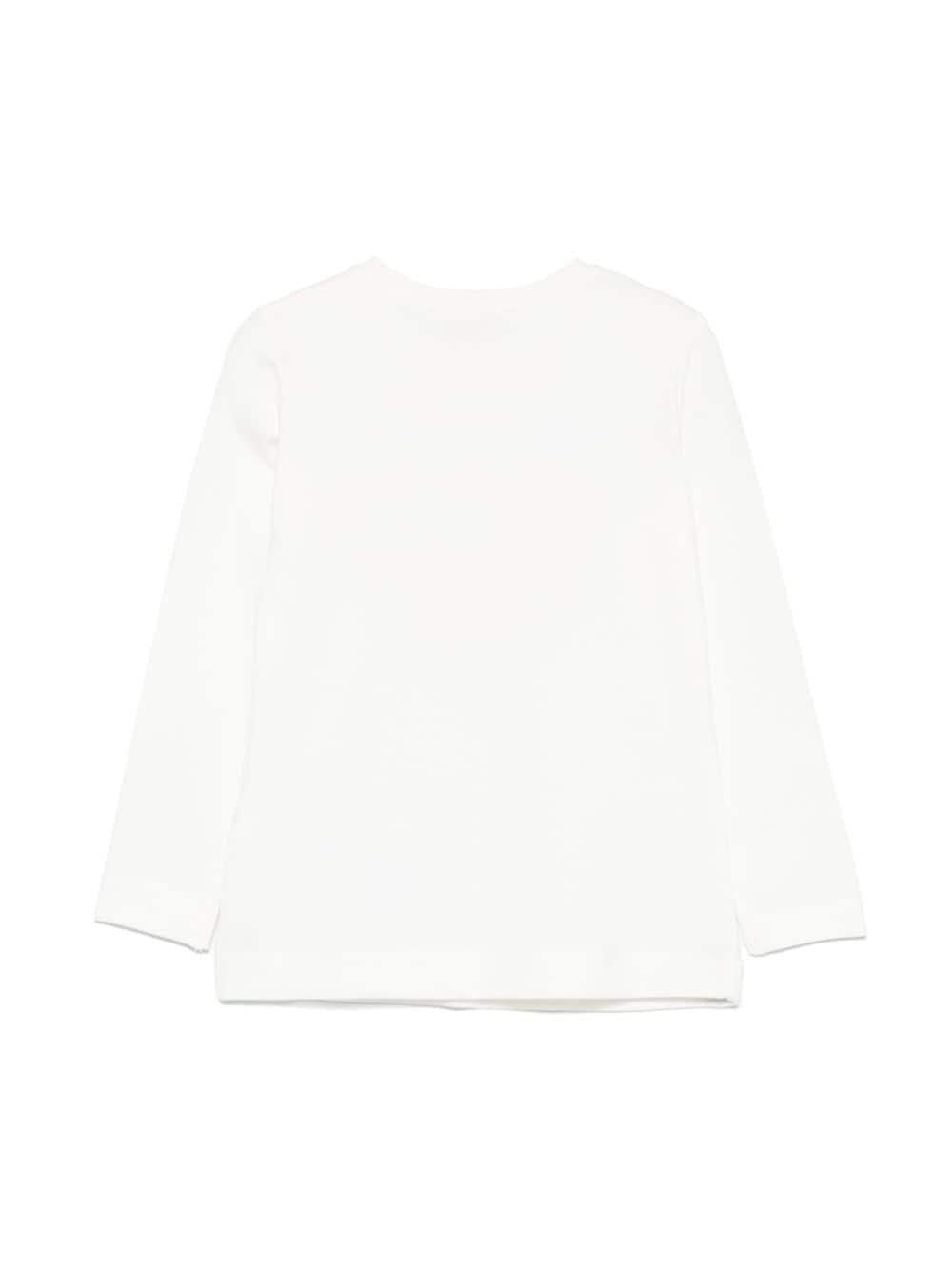 The Monnalisa x Barbie white T-shirt for girls with a heart motif is available on the RubinoKids.com online store. Made of 95% cotton, 5% elastane, the T-shirt features an off-white cotton blend, lightweight jersey, a heart motif, a round neck, crystal embellishments, long sleeves, and a straight hem. Available in various sizes, it is part of the Monnalisa Fall/Winter 2024 collection and is available for immediate shipment with delivery within 24-48 hours in Italy.