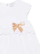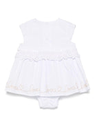 Monnalisa white cotton baby romper with ruffles and cap sleeves