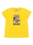 Moschino Kids yellow Teddy Bear T-shirt for baby girls with straight hem