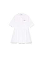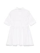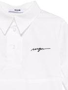 MSGM Kids white logo dress for girls with pointed collar