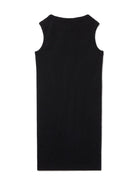 The Off-White Kids Off-stamp black ribbed dress for girls is available on the RubinoKids.com online store. Made of 100% cotton, it features a black color, a round neck, a front logo print, ribbed detail, a cut-out detail, and sleeveless. Available in various sizes, it is part of the Off-White Kids Spring/Summer 2025 collection and is available for immediate shipment with delivery within 24-48 hours in Italy.