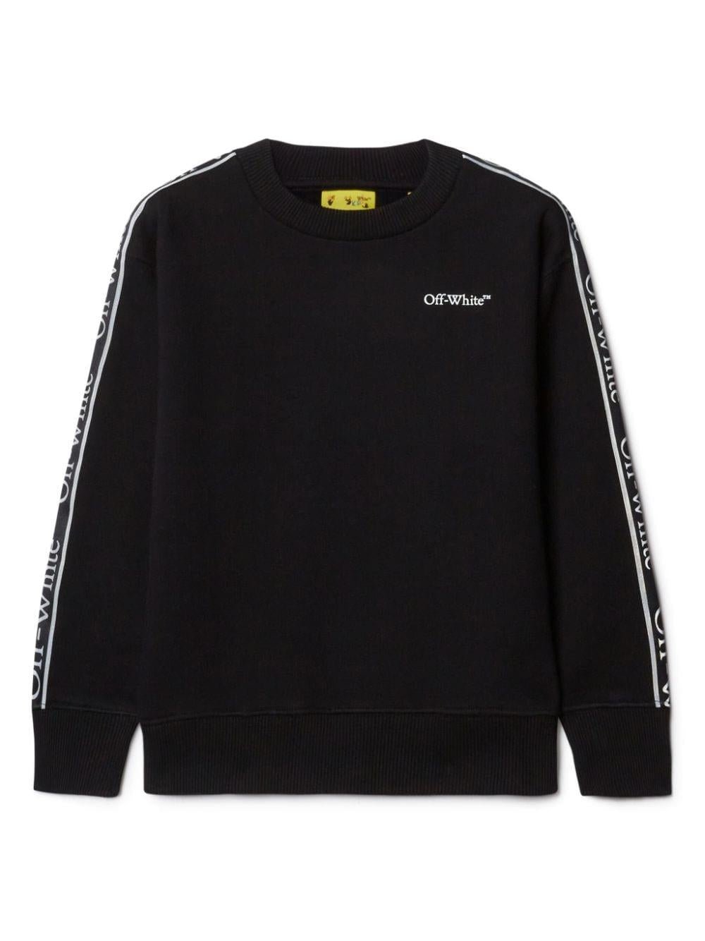 Off-White Kids Black Bookish Logo Band Sweatshirt for Boys with Logo Print on Chest