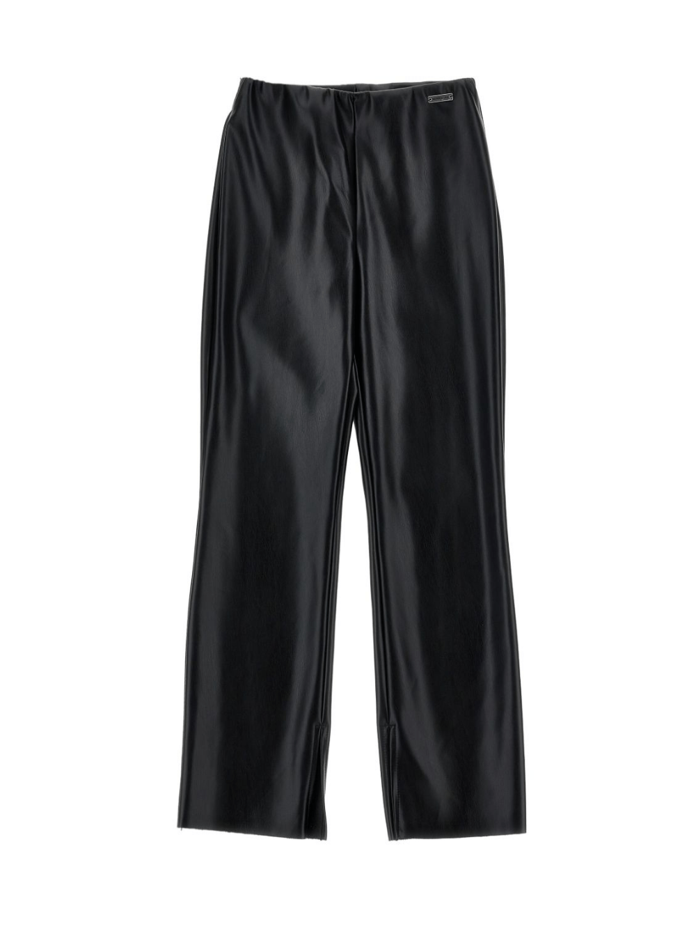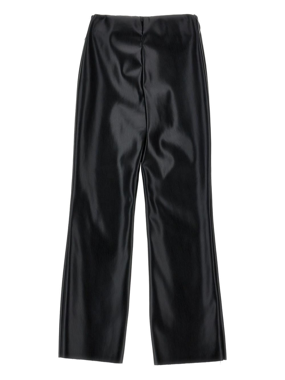 The Monnalisa black high-waisted flared trousers for girls are available on the RubinoKids.com online store. Made of 100% polyurethane, they feature a black color, a smooth finish, a back zip closure, an elongated silhouette, a flared hem, and side slits. Available in various sizes, they are part of the Monnalisa Fall/Winter 2025 collection and are available for 24-48 hour delivery in Italy.