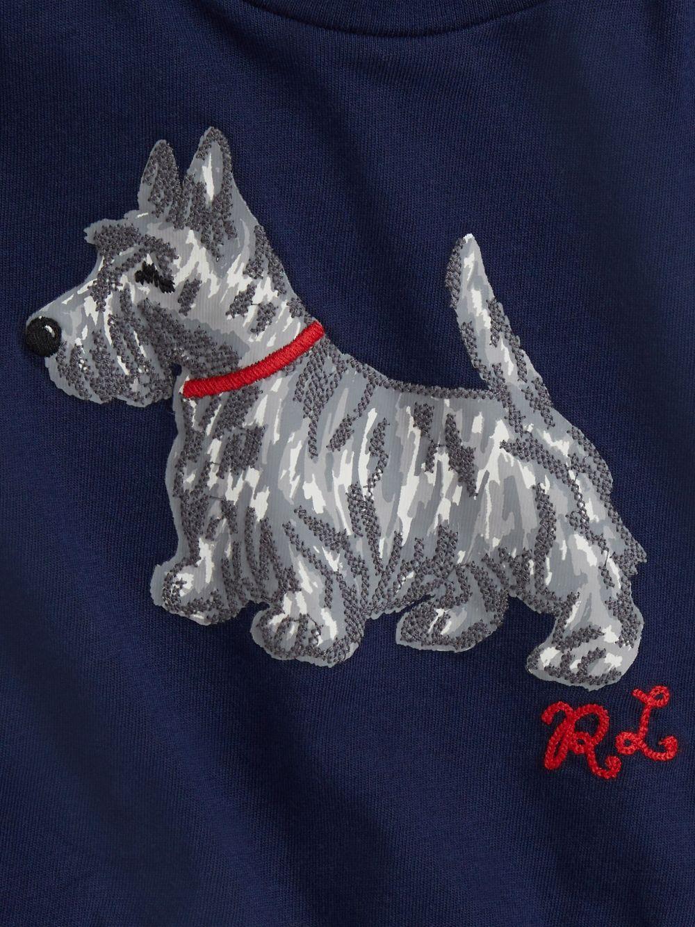 The Polo Ralph Lauren Kids blue tartan print t-shirt and pants set for baby girls is available on the RubinoKids.com online store. Made of 55% polyester, 35% cotton, and 10% elastane, the product features a blue color, a Scottish dog motif, a peplum design, a tartan print, and an elastic waistband. Available in various sizes, it is part of the Polo Ralph Lauren Kids Fall/Winter 2025 collection and is available with 24/48 hour delivery in Italy.
