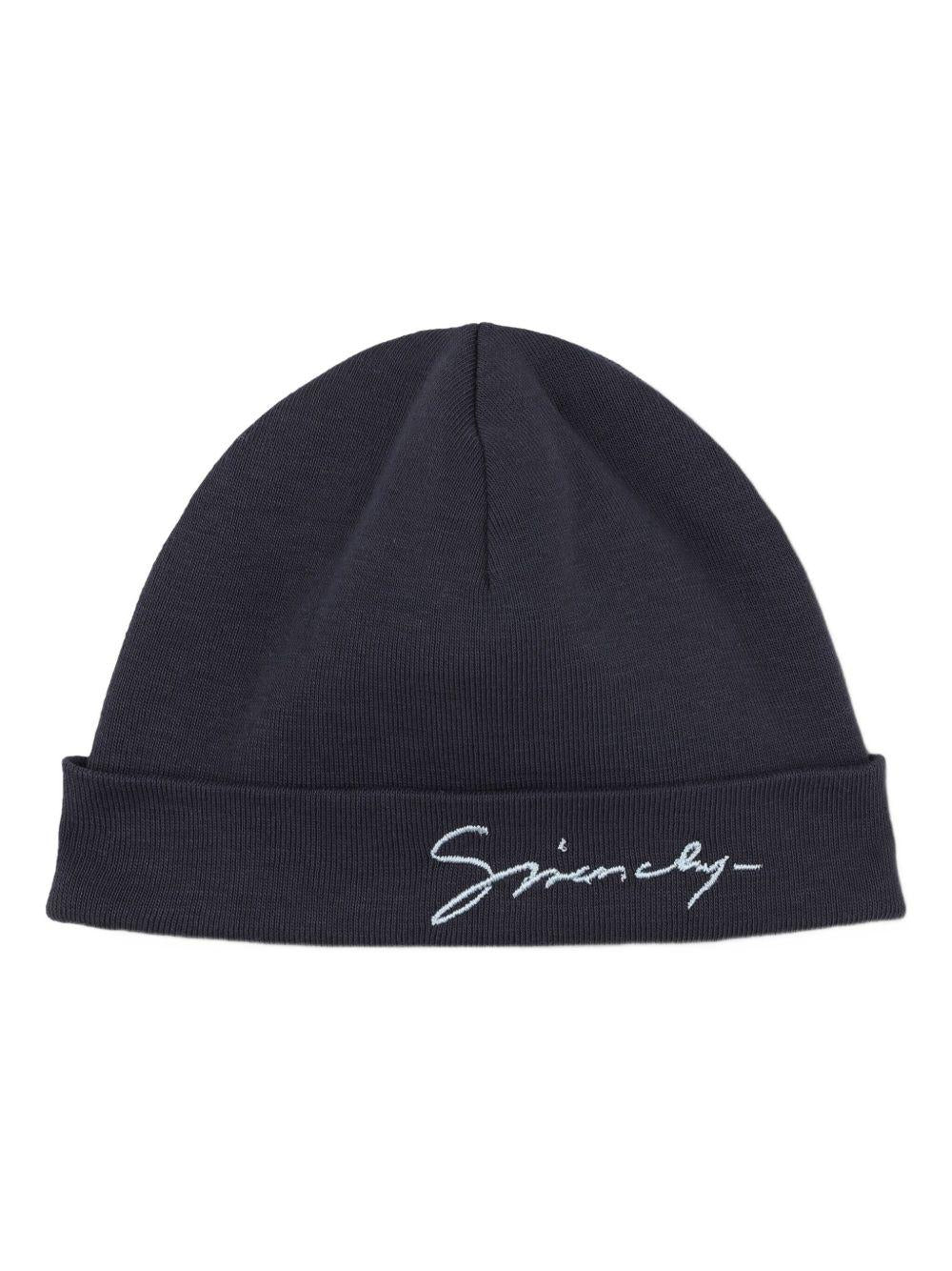 Givenchy Kids blue baby romper, hat and bib set with embroidered logo